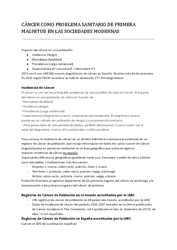Artículos de PRADO de cáncer resumidos para estudiarlos para el examen