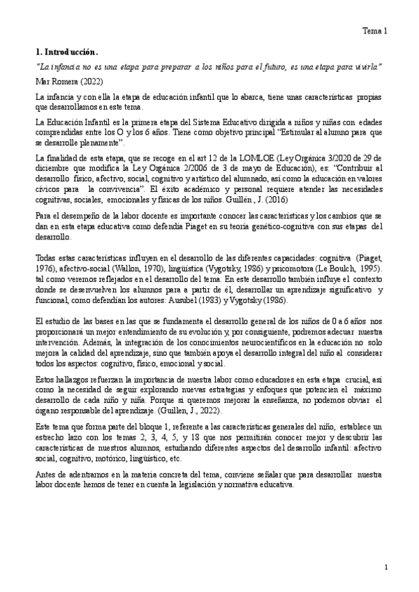 Tema 1. Características generales del niño/a hasta los seis años.