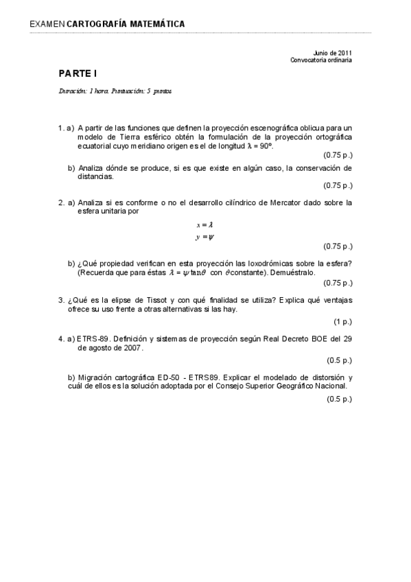 He publicado nuevos examenes de 3º Cartografía Matemática: Examenes