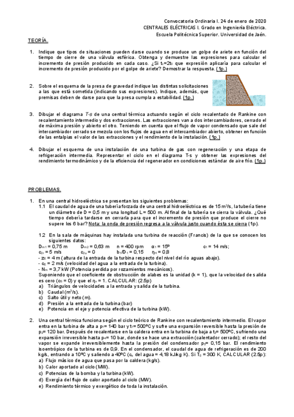 He publicado nuevos examenes de 4º Centrales Eléctricas I: Ordinariaenero24.pdf