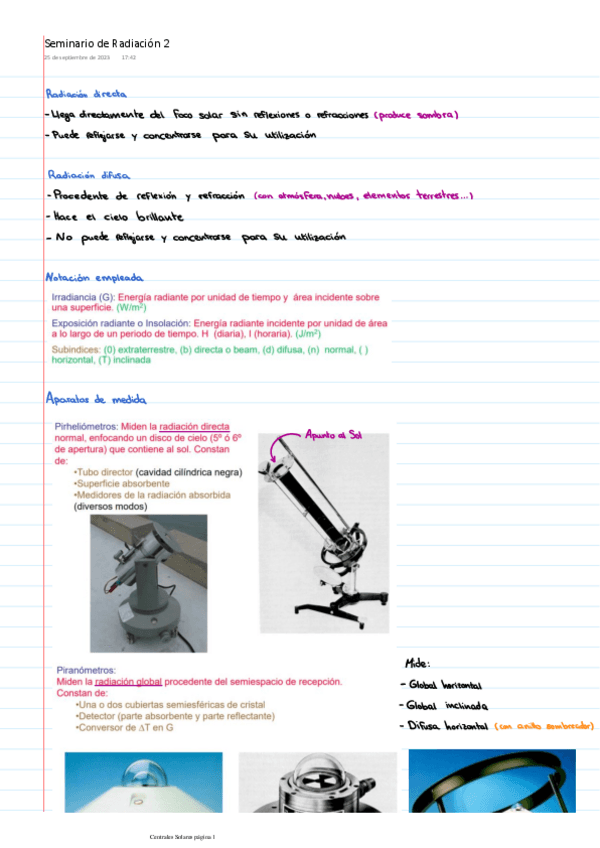 He publicado nuevos apuntes de 4º Centrales Solares (Er): Seminario de Radiación