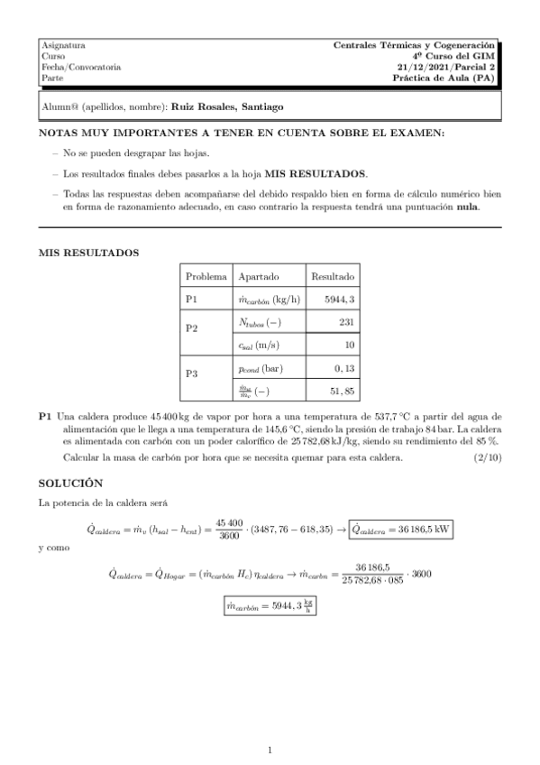 He publicado nuevos examenes de 4º Centrales Térmicas y Cogeneración: Primer y Segundo Parcial-2021-2022.pdf