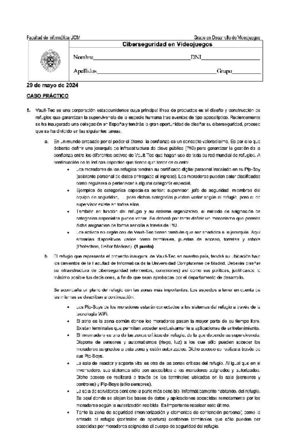 He publicado nuevos examenes de 4º Ciberseguridad en Videojuegos: Examenes anteriores