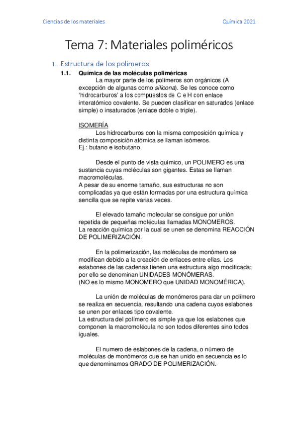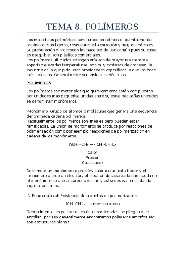 He publicado nuevos apuntes de 4º Ciencia de los Materiales: TEMA-7-MATERIALES-POLIMERICOS.pdf