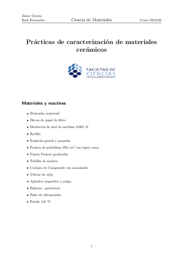 Informe de prácticas: Prácticas de caracterización de materiales cerámicos
