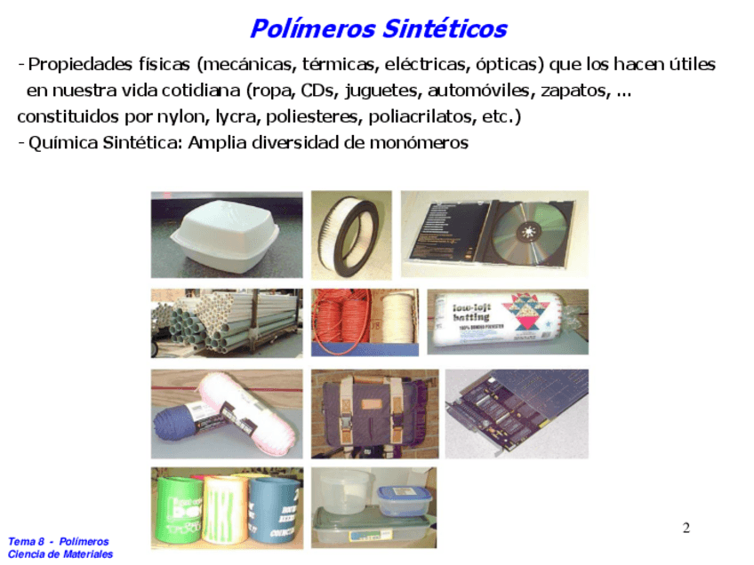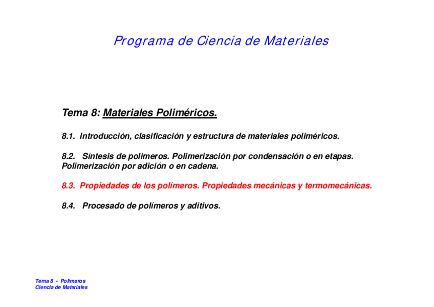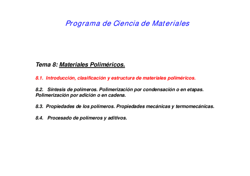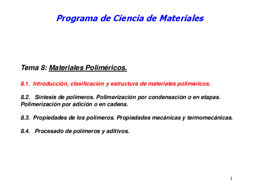 He publicado nuevos apuntes de 4º Ciencia de Materiales: Tema-8Polimeros.pdf