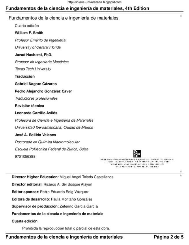 He publicado nuevos apuntes de 1º Ciencia e Ingeniería de los Materiales: Fundamentos de la Ciencia e Ingenieria de Materiales - 4ta Edición - William F. Smith.pdf