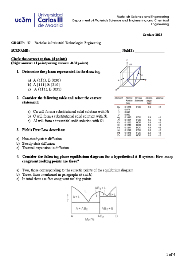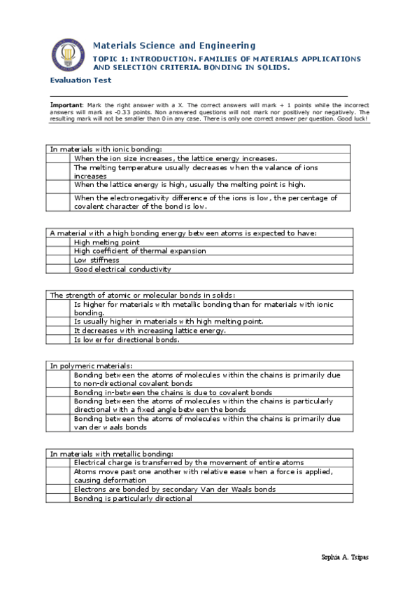 He publicado nuevos examenes de 2º Ciencia e Ingeniería de Materiales: Test-TOPIC-1-INTRODUCTION.-FAMILIES-OF-MATERIALS-APPLICATIONS-AND-SELECTION-CRITERIA.-BONDING-IN-SOLIDS..pdf