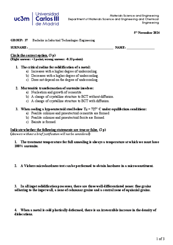 He publicado nuevos examenes de 2º Ciencia e Ingeniería de Materiales: Control3MSEG3720242025.pdf