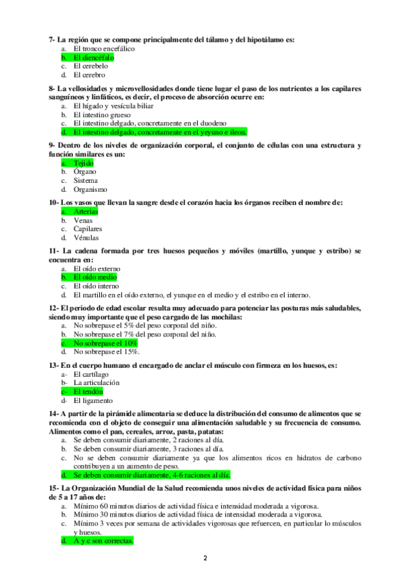 Todas las posibles preguntas que pueden caer son cortas con varias opciones a elegir una, en algunas preguntas aparecen los enunciados con todas las opciones posibles y en otras preguntas solo aparecen los enunciados y la única respuesta correcta.