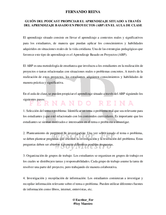 He publicado nuevos apuntes de 7º Ciencia y Educación: GUION-DEL-PODCAST-PROPICIAR-EL-APRENDIZAJE-SITUADO-A-TRAVES-DEL-APRENDIZAJE-BASADO-EN-PROYECTOS-ABP-EN-EL-AULA-DE-CLASE.pdf