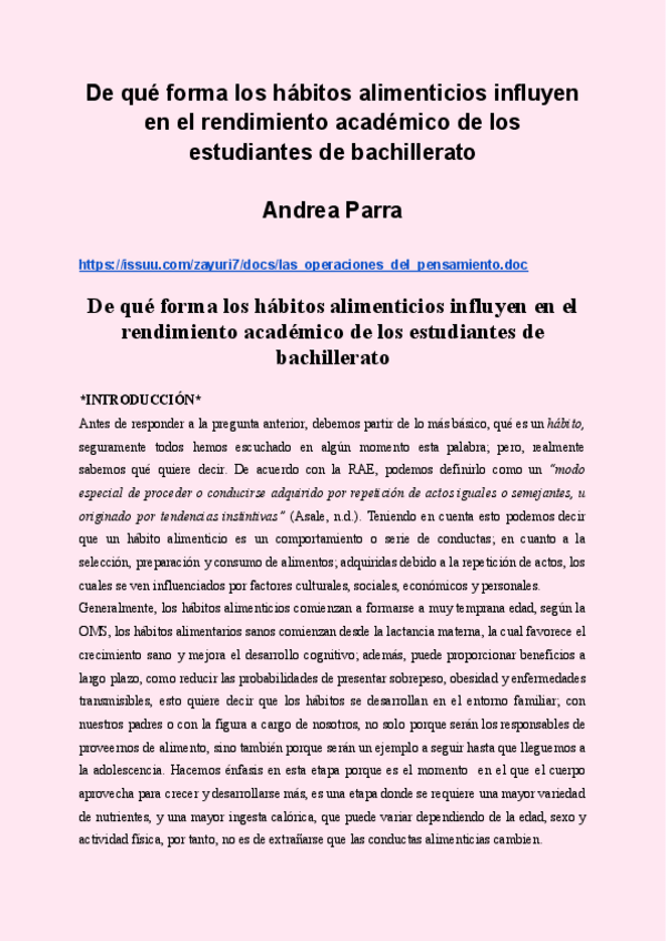 Este es un pequeño ensayo de investigación a cerca de como la alimentación puede afectar al rendimiento académico