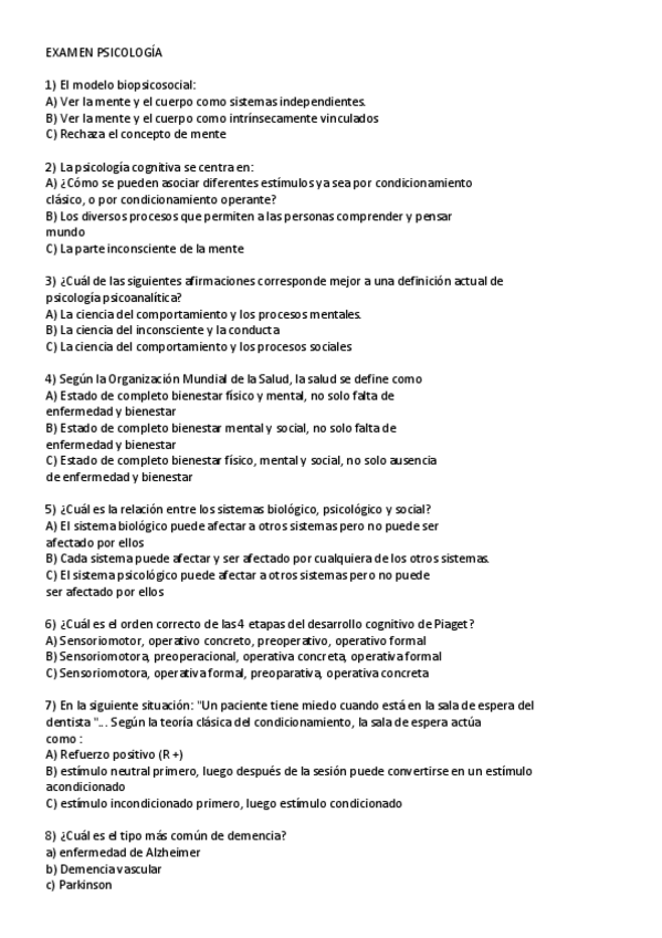 Examenes de Repaso Psicología