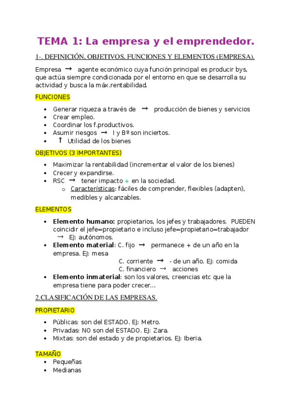 Temas 1 y 3 economía 2Bach. La empresa y el emprendedor (1) y el entorno empresarial (3).