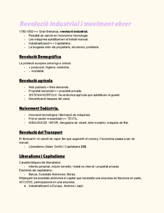 Resum de la revolució industrial i el moviment obrer