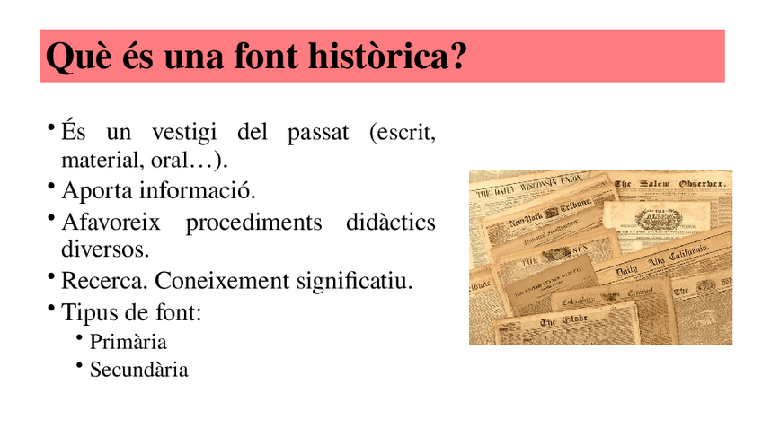 He publicado nuevos apuntes de 3º Ciencias Sociales y su Didáctica II (Historia): 2a-practica.-Fonts-historiques-presentacio.pptx