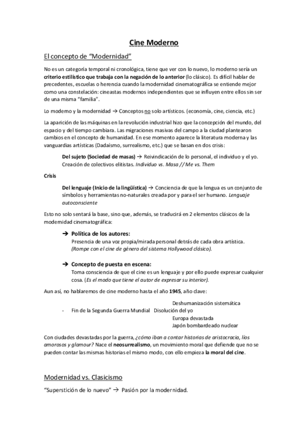 He publicado nuevos apuntes de 2º Cine Moderno: Primer semestre