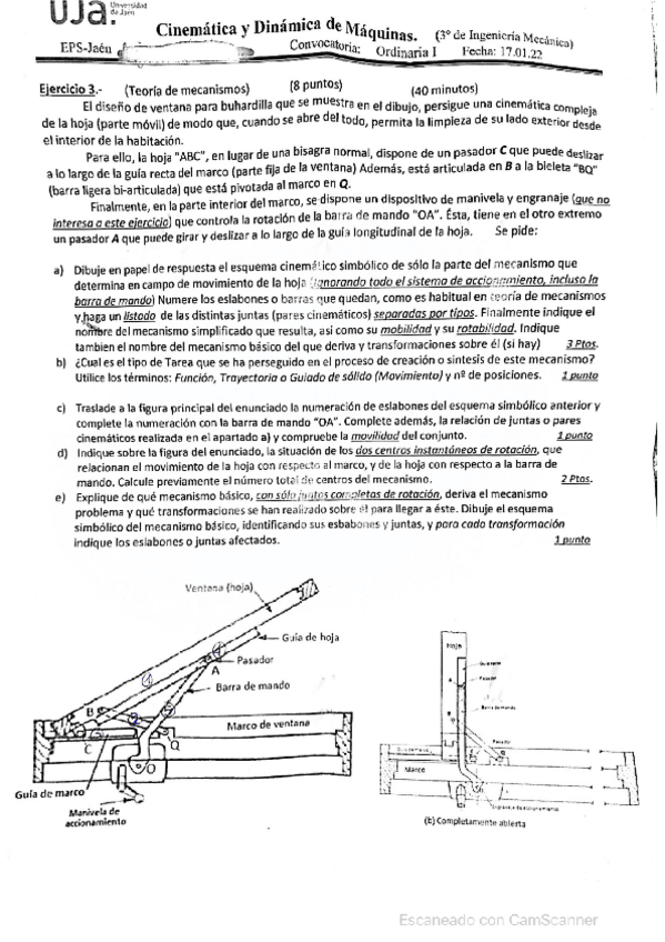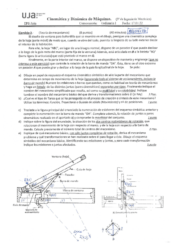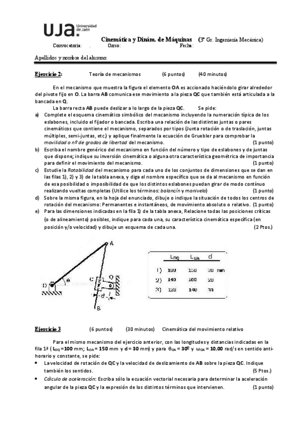 He publicado nuevos examenes de 3º Cinemática y Dinámica de Máquinas: Cinematica-Enero-2022.pdf
