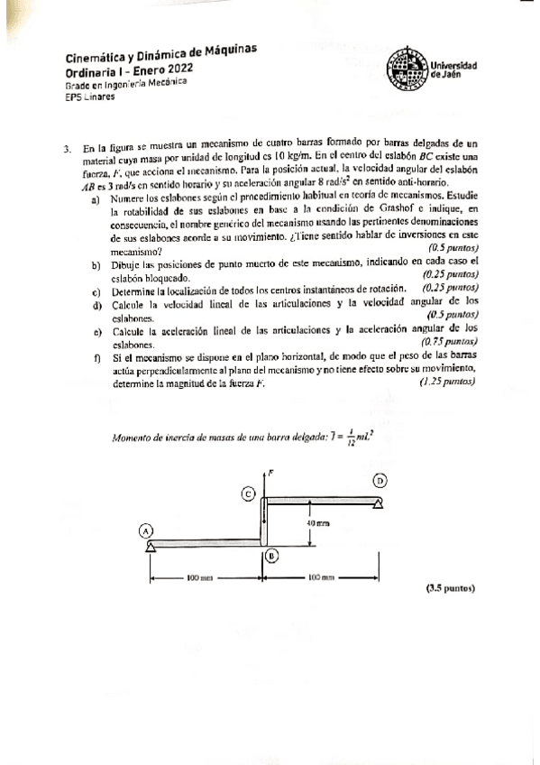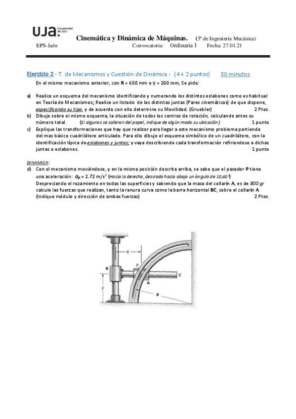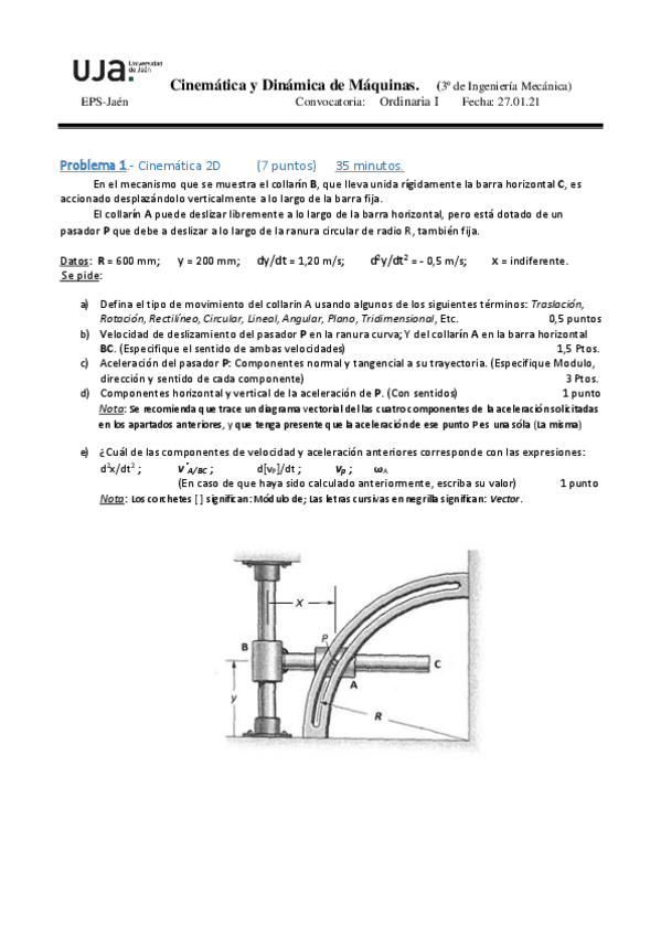 He publicado nuevos examenes de 3º Cinemática y Dinámica de Máquinas: Enero2022-Examen.pdf