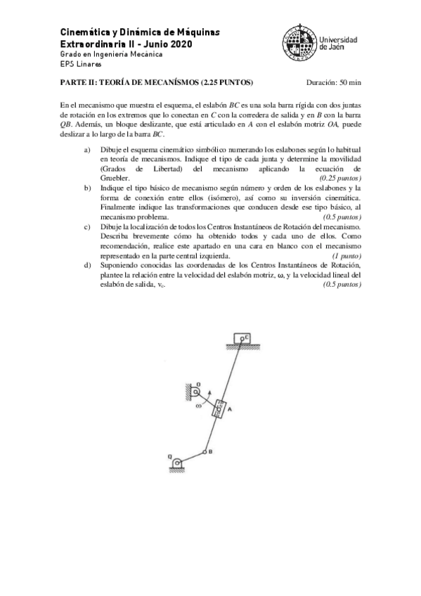 He publicado nuevos examenes de 3º Cinemática y Dinámica de Máquinas: 2019-20Extraordinaria-1.pdf