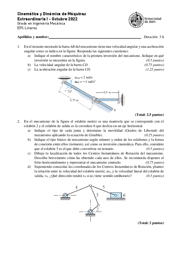 He publicado nuevos examenes de 3º Cinemática y Dinámica de Máquinas: 2022-Octubre.pdf