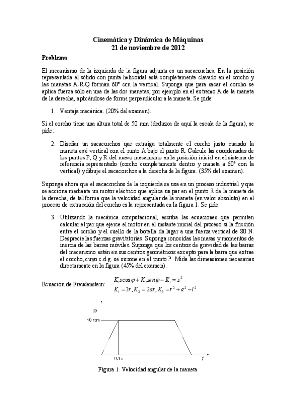 He publicado nuevos examenes de 3º Cinemática y Dinámica de Máquinas: Examen Junio 2015.pdf