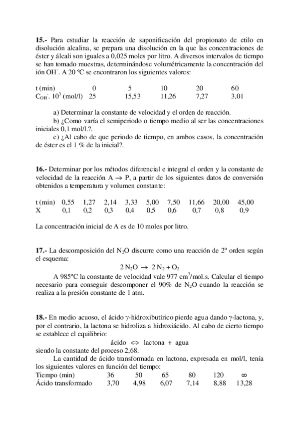 He publicado nuevos ejercicios de 3º Cinética Química Aplicada: Ejercicios parte 1