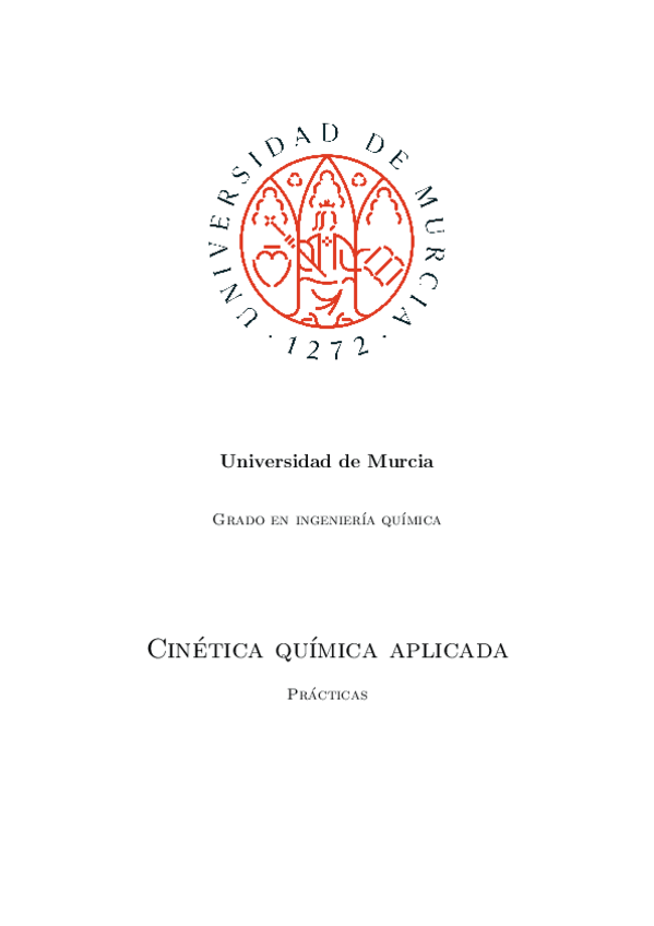 INICIO DE CURSO CINÉTICA QUÍMICA APLICADA GRADO EN INGENIERÍA QUÍMICA