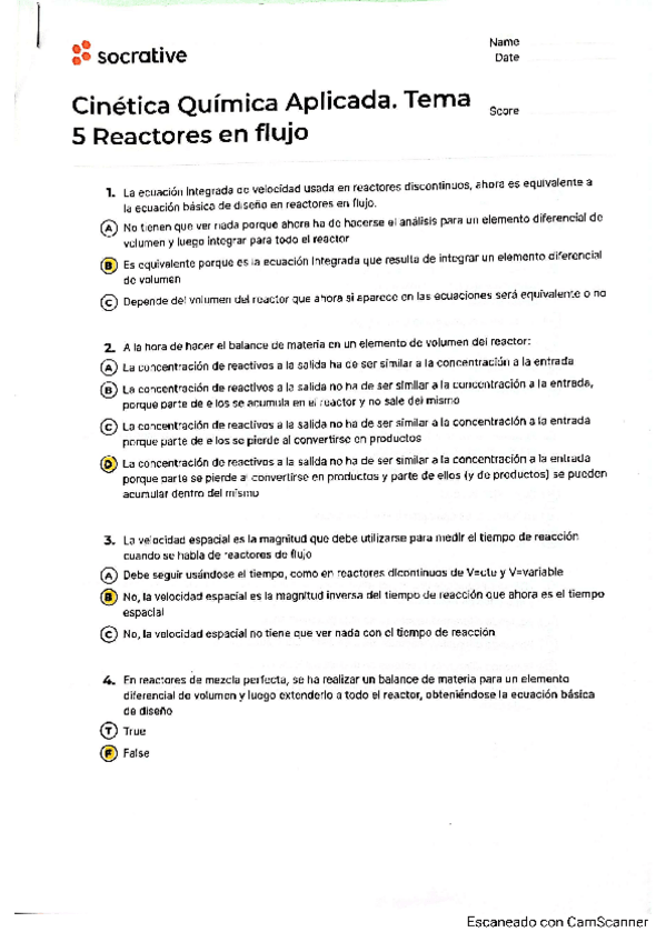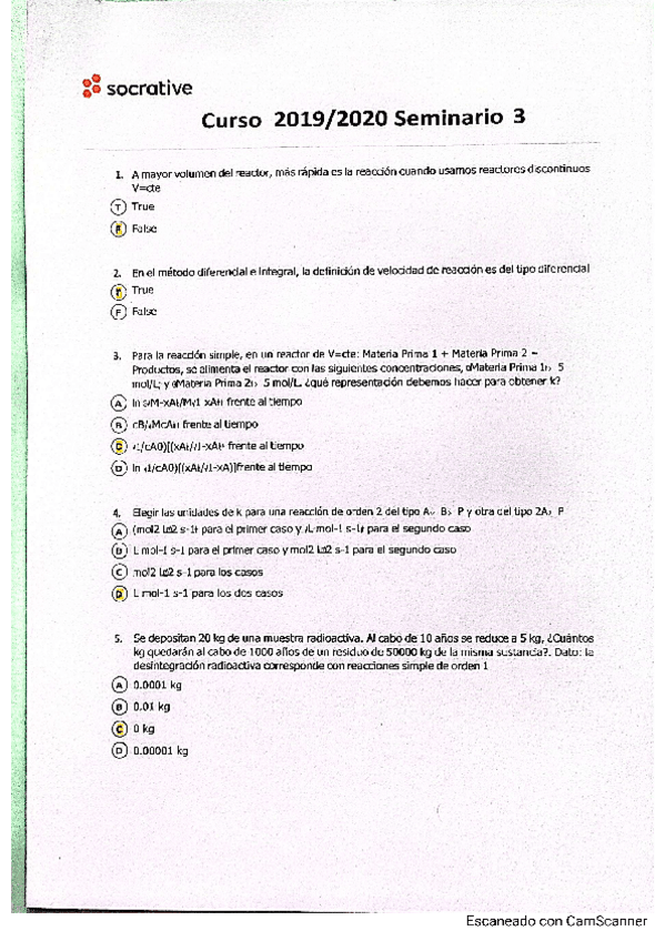 He publicado nuevos test de 2º Cinética Química Aplicada: Socratives y cuestionarios resueltos