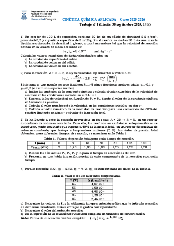 He publicado nuevos apuntes de 3º Cinética Química Aplicada: Trabajo-1-Resuelto.pdf