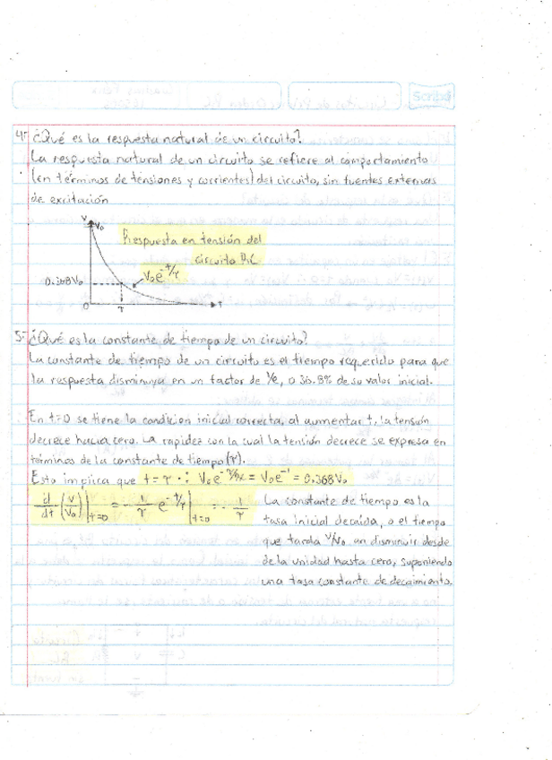 He publicado nuevos apuntes de 5º Circuitos eléctricos I: Problemas-Respuesta-Natural-RC.pdf