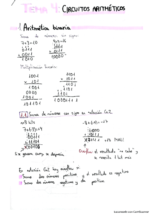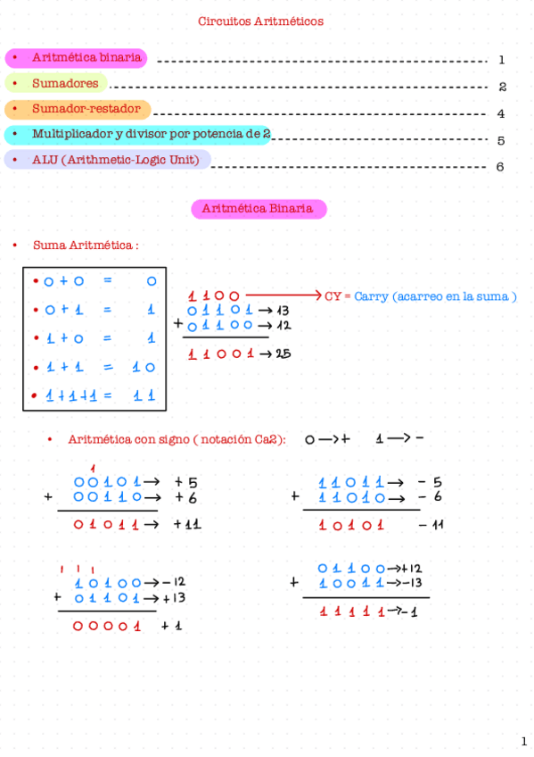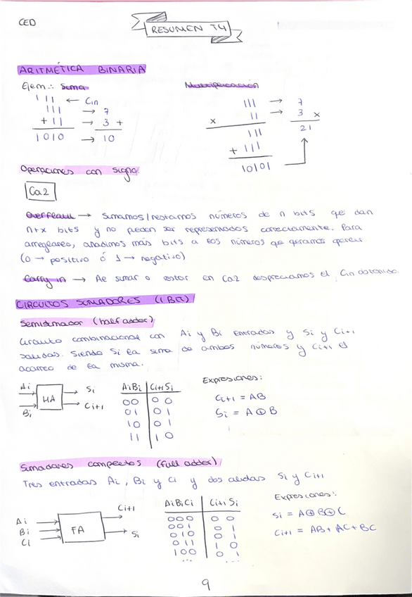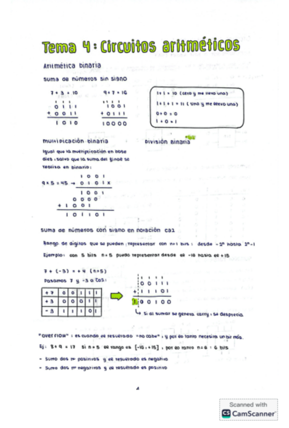 Apuntes resumidos del tema 4 - Circuitos aritméticos. Resumen hecho sobre los apuntes del profesor Francisco Pérez García