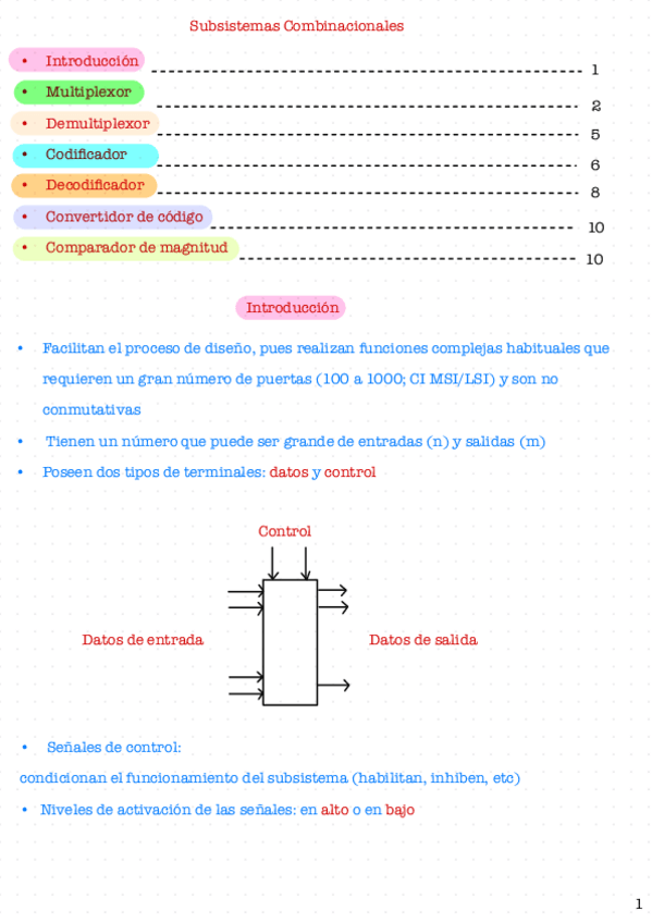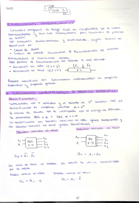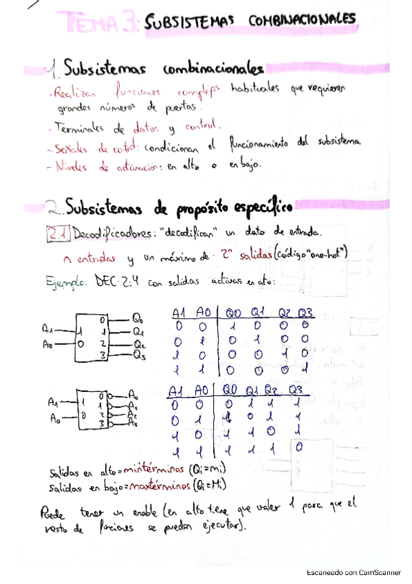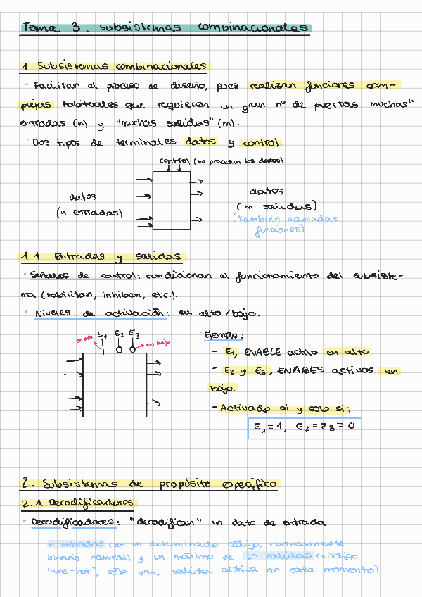 Apuntes resumidos del tema 3 - Subsistemas combinacionales. Resumen hecho sobre los apuntes del profesor Francisco Pérez García