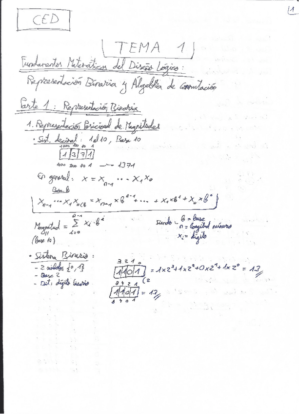 He publicado nuevos apuntes de 1º Circuitos Electrónicos Digitales: TEMA 1 REPRESENTACIÓN BINARIA Y ÁLGEBRA DE CONMUTACIÓN