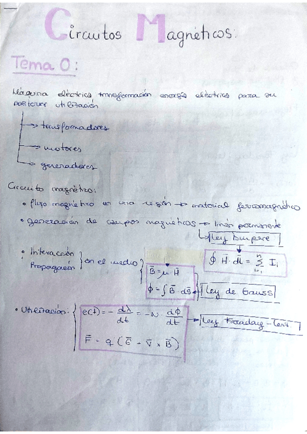 Apuntes de Teoria Tema 4 2ºParcial Circuitos Magneticos. Profesor: Paco Ruz