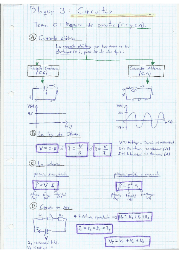 Cuaderno de apuntes del bloque de circuitos con el temario dado en clase y ejercicios. Año 21-22.