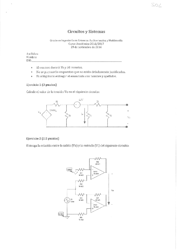 He publicado nuevos examenes de 2º Circuitos y Sistemas: Ejercicios_Examen (con soluciones).pdf