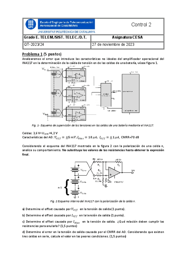 He publicado nuevos examenes de 2º Circuits Electrònics i Sistemes d'Alimentació: Control-317-18Q2-2.pdf