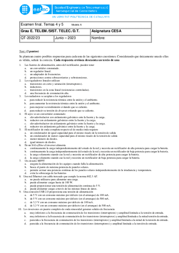 He publicado nuevos examenes de 2º Circuits Electrònics i Sistemes d'Alimentació: Control 2