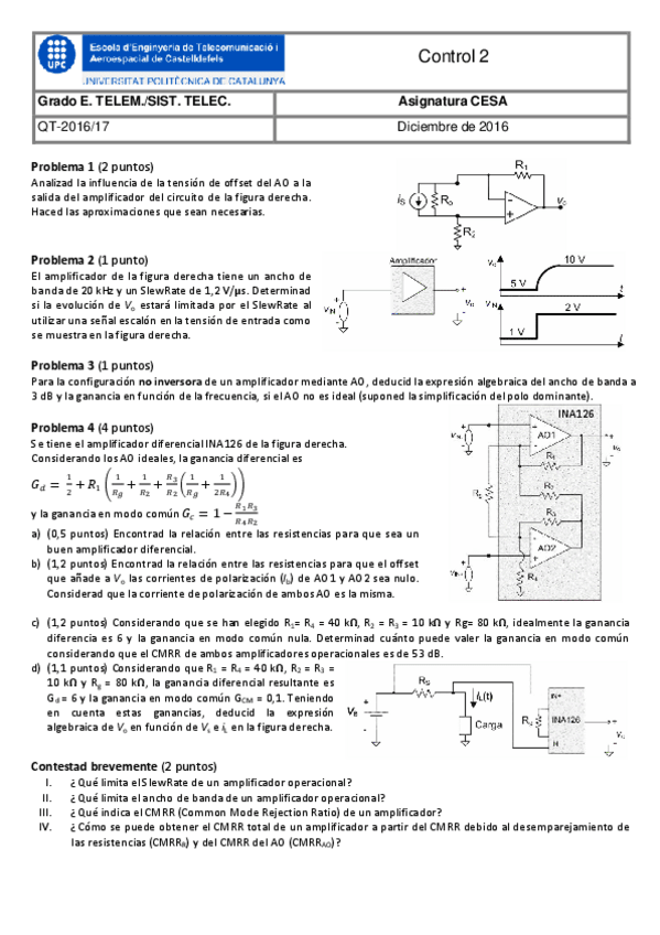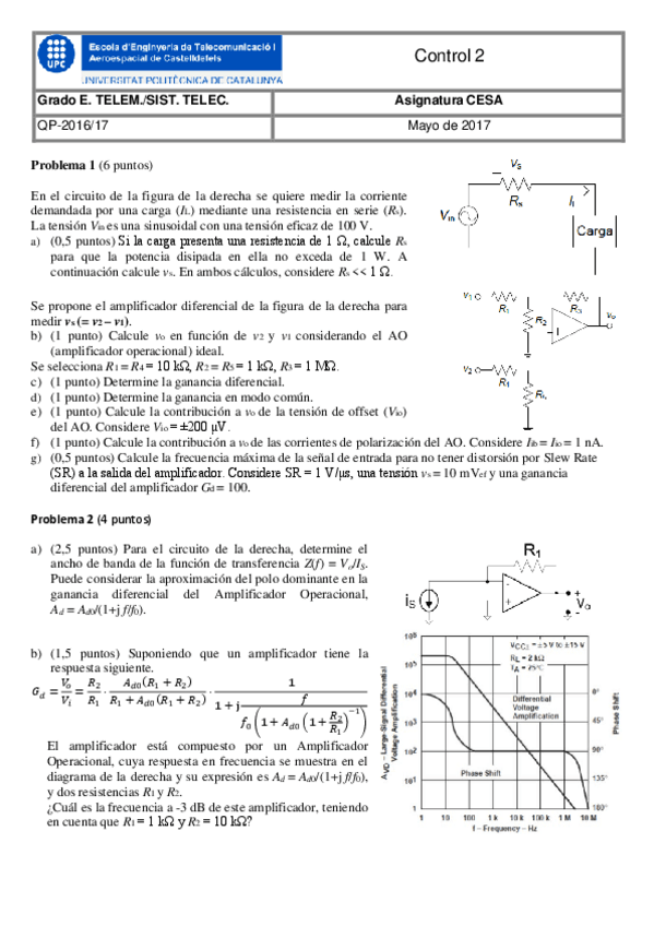 He publicado nuevos examenes de 2º Circuits Electrònics i Sistemes d'Alimentació: Control-316-17Q1-2.pdf