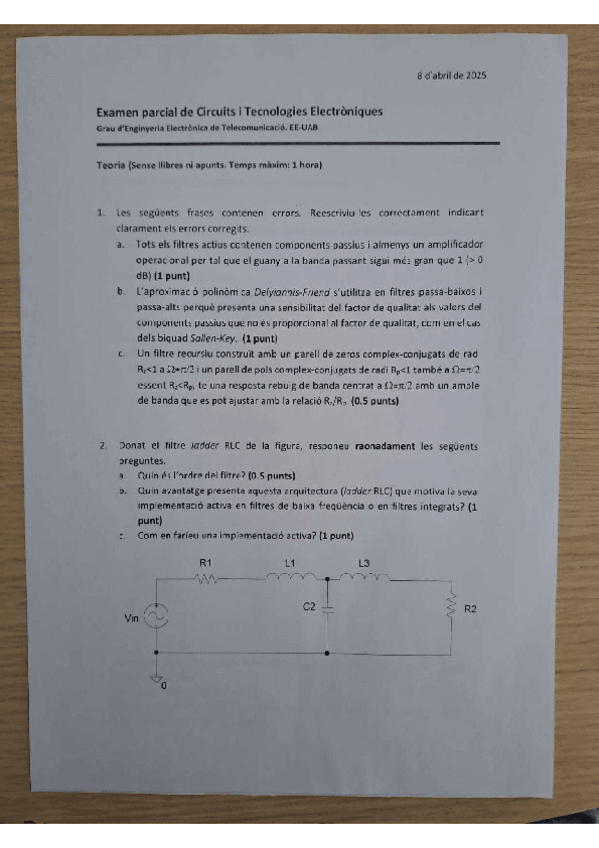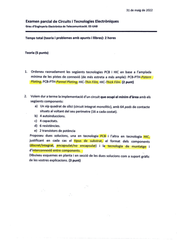 He publicado nuevos examenes de 3º Circuïts i Tecnologies Electròniques: Teoria-Parcial-24-25.pdf