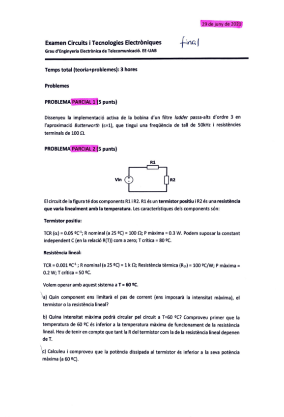 He publicado nuevos examenes de 3º Circuïts i Tecnologies Electròniques: Final-2020-21-Enunciat.pdf