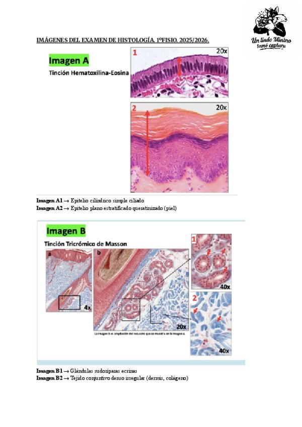 Cortes histológicos del examen de Histología hecho el 23/01/2026