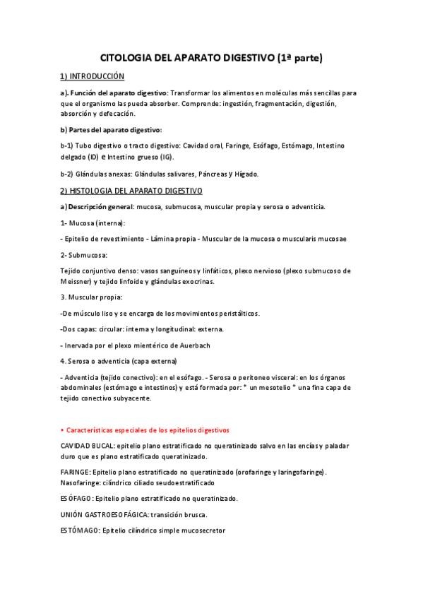 Apuntes sobre el tema del aparato digestivo de citología general