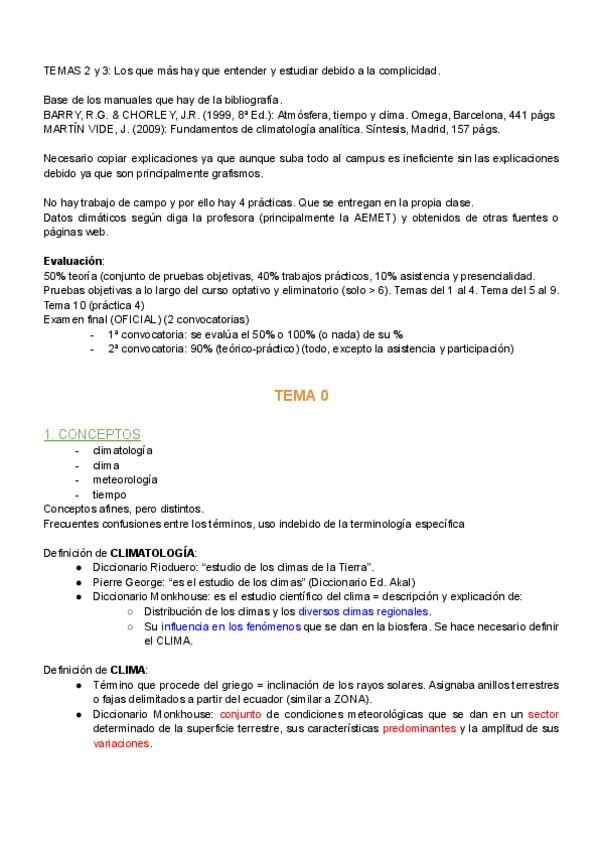 Apuntes con toda la información dada en clase y de las diapositivas de Climatología para el primer parcial.