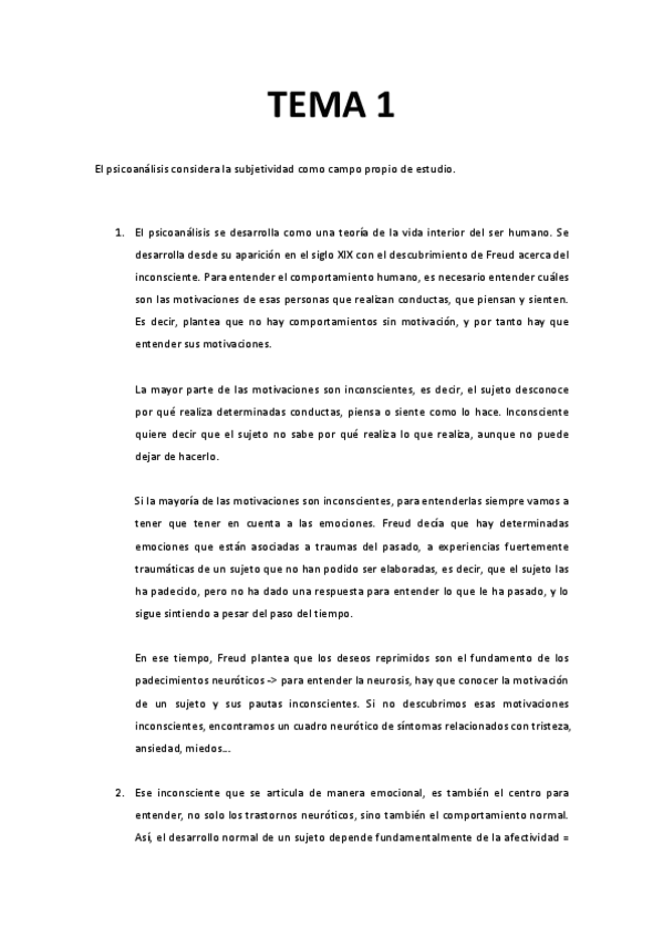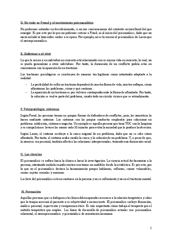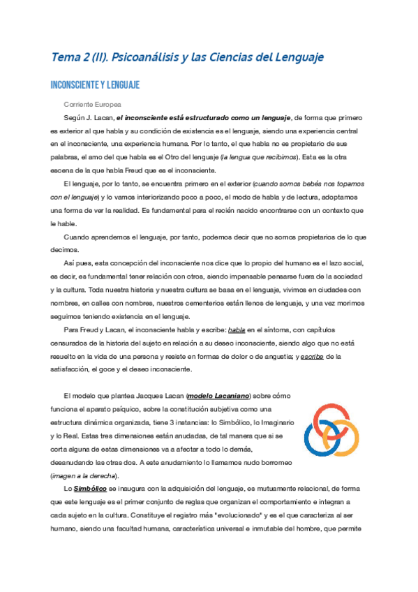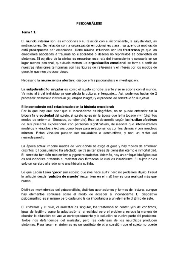 Todos los temas de psicoanalítica. Dentro del tema 2 está el tema de estructura del lenguaje. Algunos temas la primera página es el resumen del tema anterior, pero a continuación aparece el tema del título,.