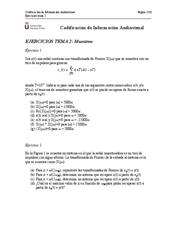He publicado nuevos ejercicios de 3º Codificación de Información Audiovisual: EjerciciosTema2Muestreo.pdf