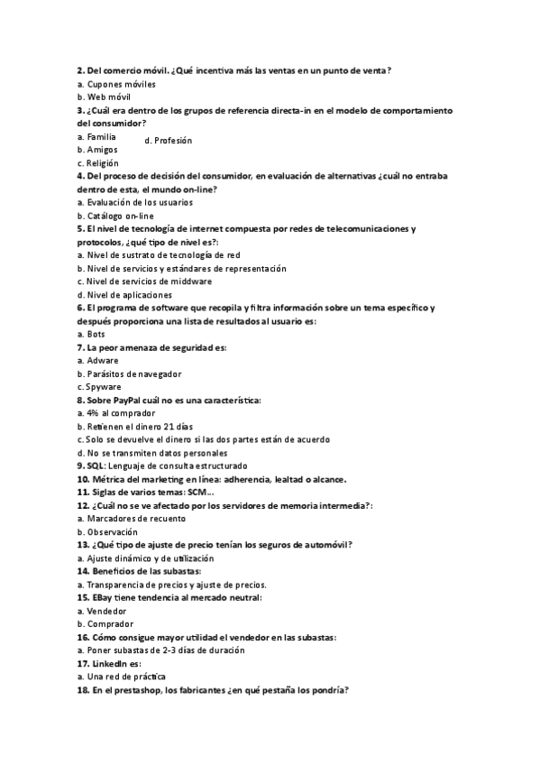He publicado nuevos apuntes de 4º Comercio Electrónico: TestTema4Preguntas140.pdf
