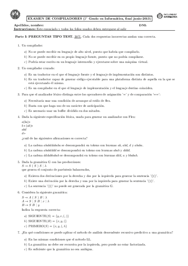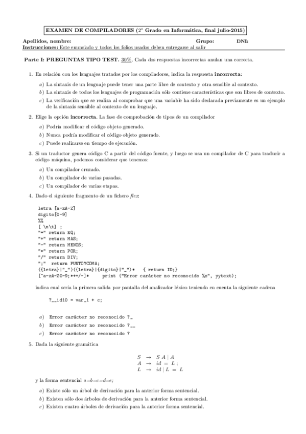 He publicado nuevos examenes de 2º Compiladores: Exámenes