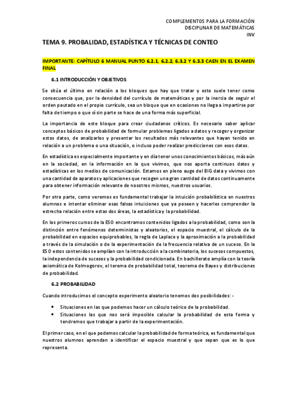 He publicado nuevos apuntes de 1º Complementos para la formación disciplinar en la especialidad de Matemáticas: TEMA-9-.-RESUMEN-PROBALIDIDAD-ESTADISTICA-Y-TECNICAS-DE-CONTEO.pdf